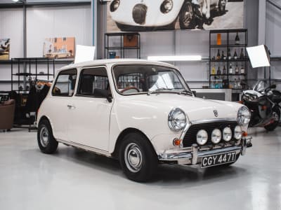 The vehicle had just been fully restored by its Mini enthusiast long-term owner when it was purchased by our vendor in 2021 Finished in Old English White with a black roof, very 1960s Mini-Cooper, it's fitted with the, now impossible to find, tubular tilt framework New interior throughout including black vinyl seats, red dash, door cards and carpets.